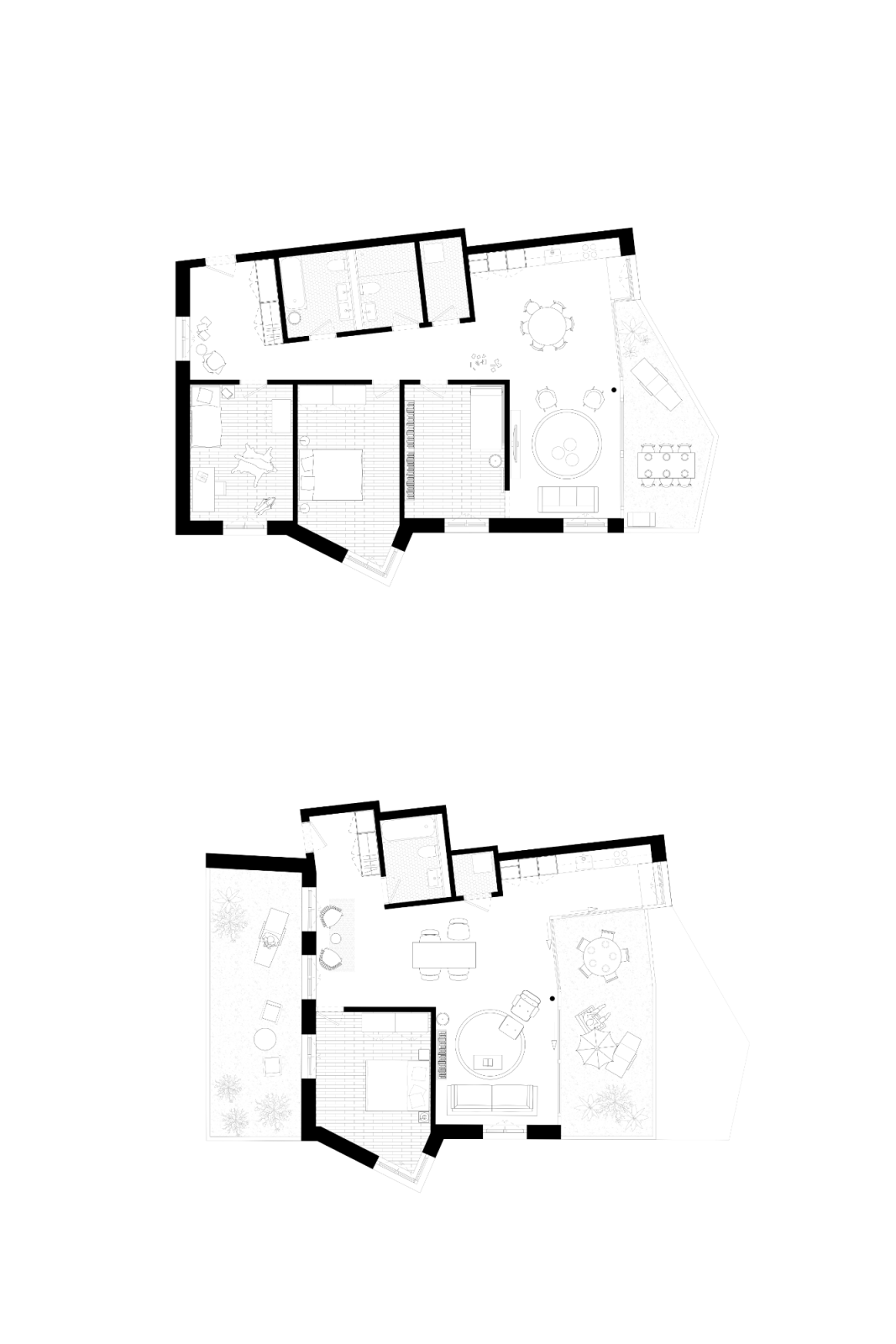 Die vorgeschlagenen Wohnungen werden mit einer Kammerstruktur und einem fliessenden Wohn-/Ess- und Erschliessungsbereich versehen. Die Räume werden geschickt in das Volumen gelegt, so dass sie von innen, wie auch von aussen auf die vorgegebene Situation eingehen. Erker bereichern die Zimmer wie auch die Fassade, der fliessende Raum wird gut zoniert, und durch seine Lage im Gebäude profitiert er von verschiedenen Lichtsituationen. Die entstehende Diagonale innerhalb des Wohnraumes bietet eine reichhaltige Grosszügigkeit, bei welcher die Wohnung nicht unmittelbar zu erfassen ist. Nasszellen und Küchen sind kompakt platziert und liegen strukturell übereinander, was die Gebäudeerschliessung effizient und nachhaltig macht. Gesamthaft können 23 Wohnungen realisiert werden.