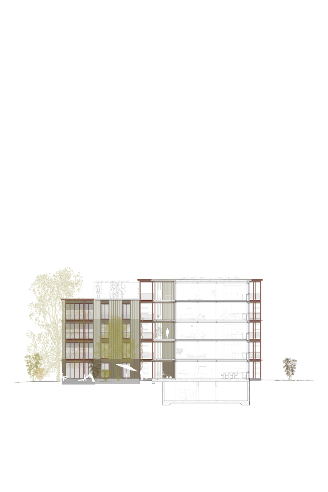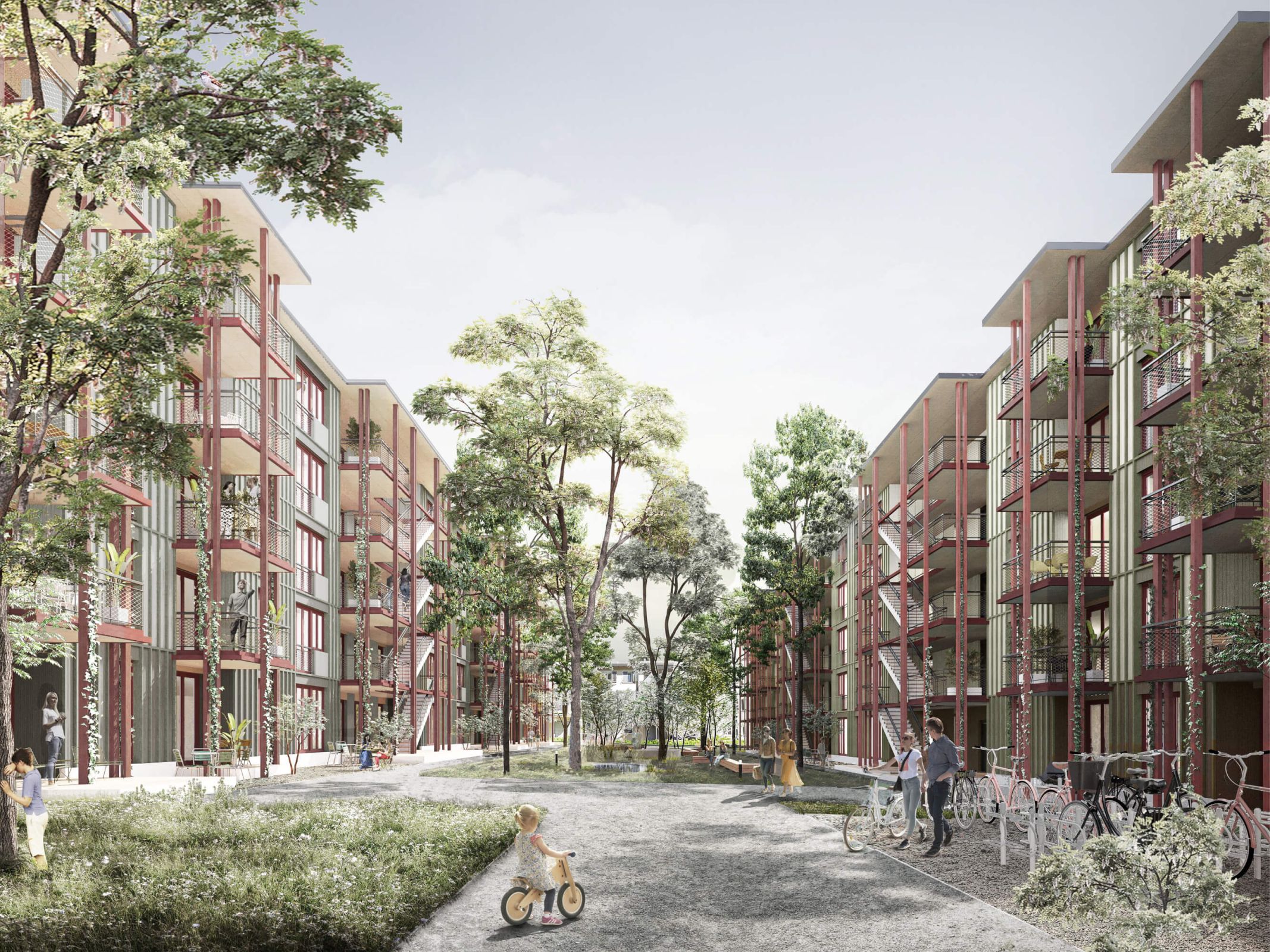 Die städtebauliche Verdichtungsstrategie wirkt selbstverständlich: Die unterschiedlichen Freiräume mit einer zentralen Parklandschaft, lateralen halbprivaten Spiel- und Verweilmöglichkeiten sowie Dachterrassen mit Weitblick sind bereichernd und überzeugend. Die neue Siedlungsmitte ist Ankunftsort, Treffpunkt und mit vorgelagerten offenen Treppenhäusern nicht nur Erschliessungsraum, sondern auch Ort der Begegnung.